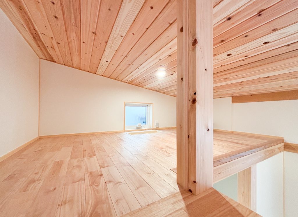 加えて、ご主人様のプライベート空間『巣ごもりロフト』を勾配天井を利用して設けた。