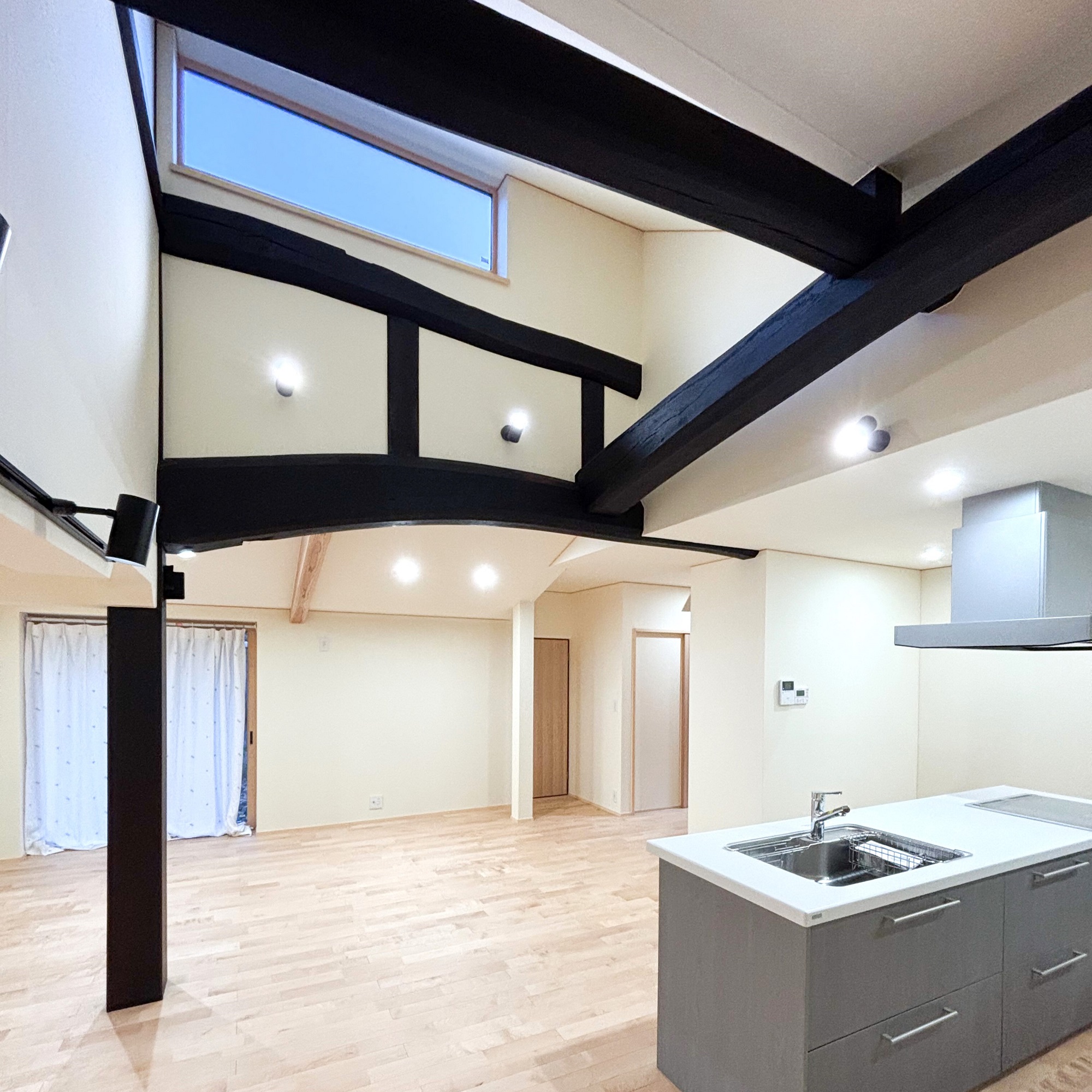 「木の家=昔ながらの家」の暗い(黑っぽい)イメージが全くなく家の中が大変明るかったこと。