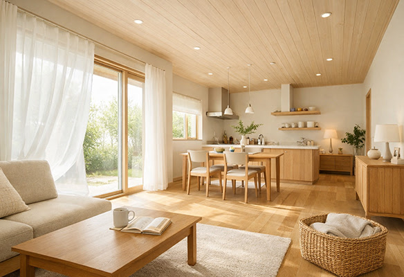 Hiraは、自然素材の力と住まいの性能で、室内の環境を穏やかに整えます。