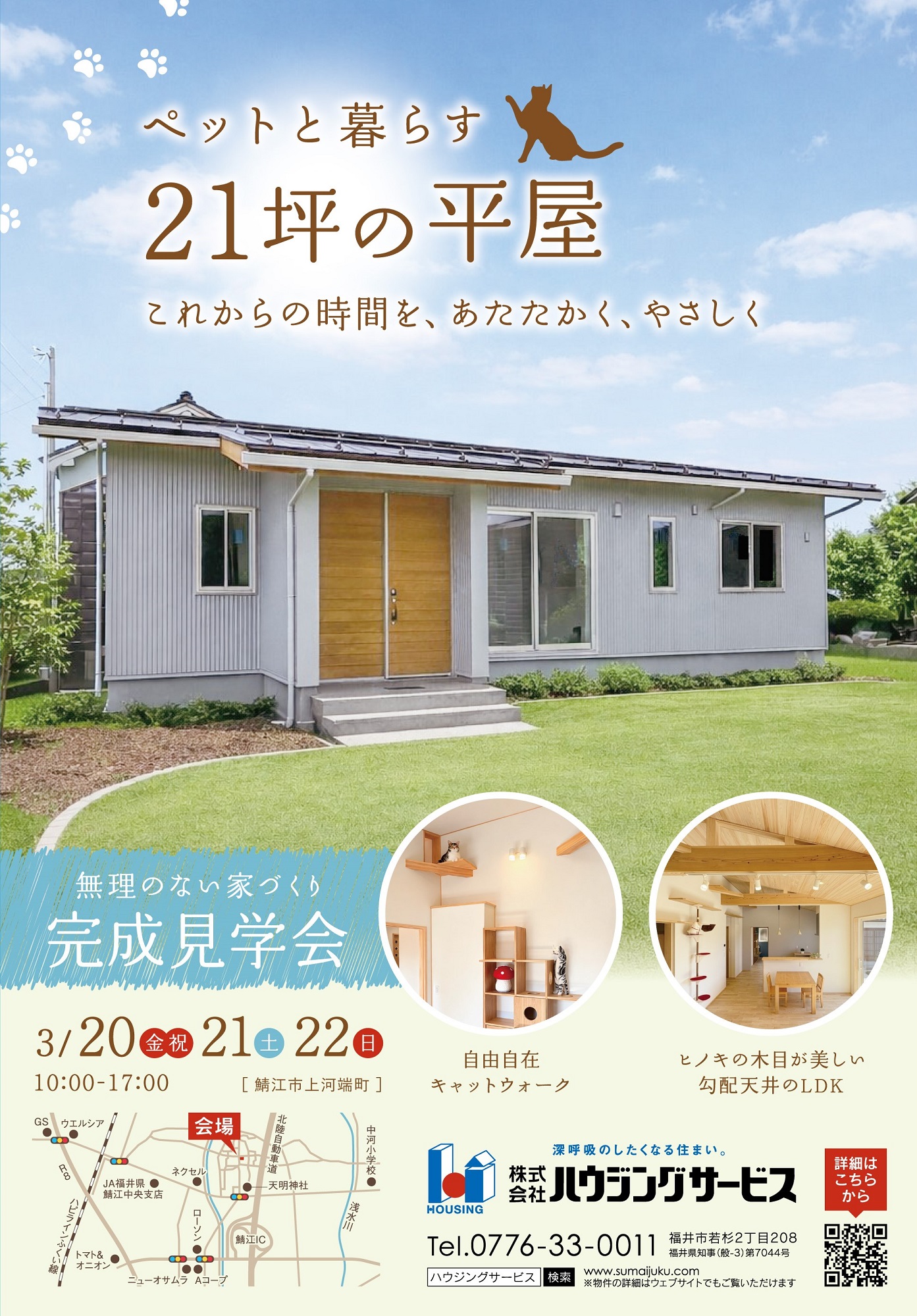 お施主様のご厚意により、鯖江市上河端町にて『ペットと暮らす21坪の平屋』完成見学会を開催させていただきます。